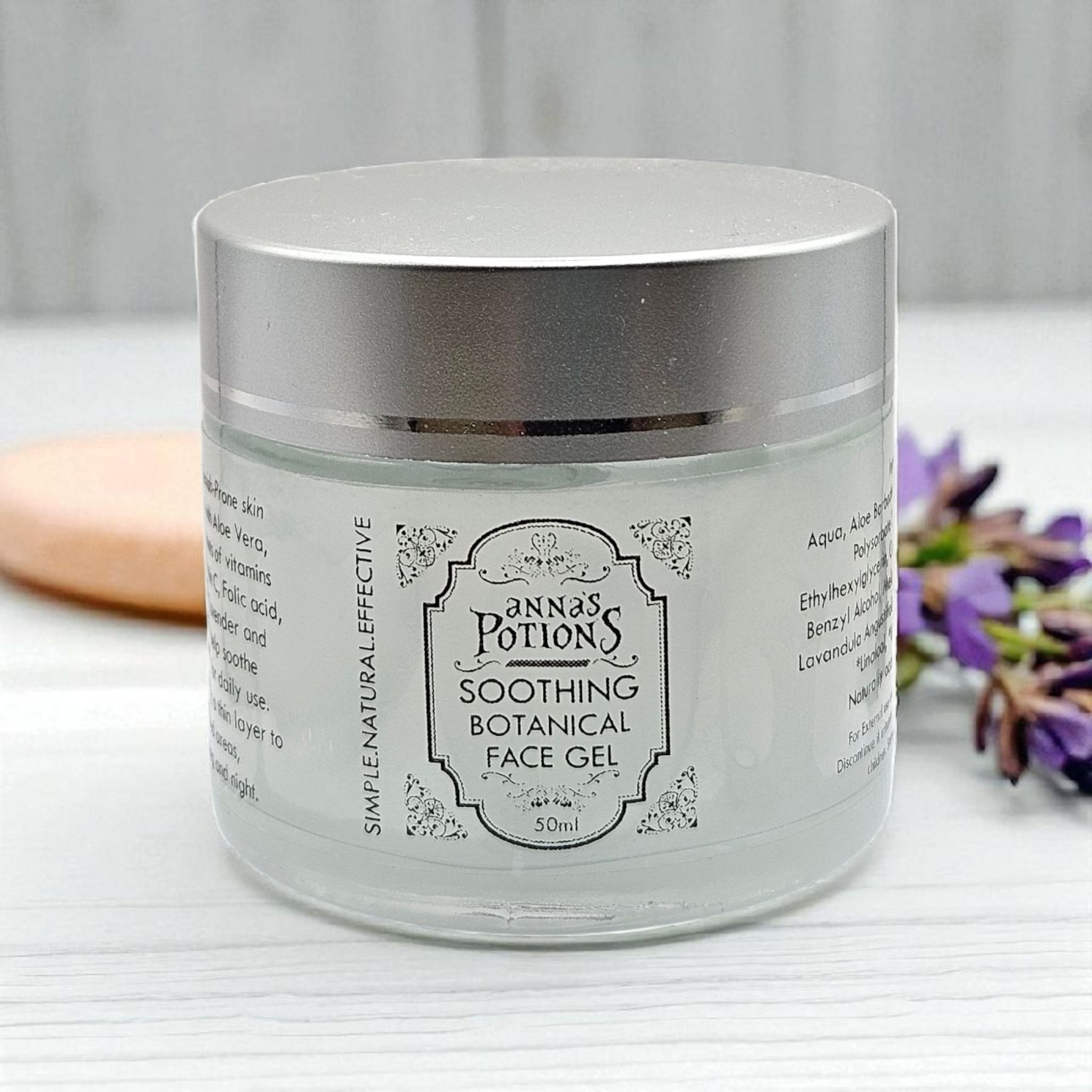 A lightweight gel formulated with Aloe Vera, naturally containing trace amounts of vitamins and antioxidants, including Vitamin C, Folic acid and